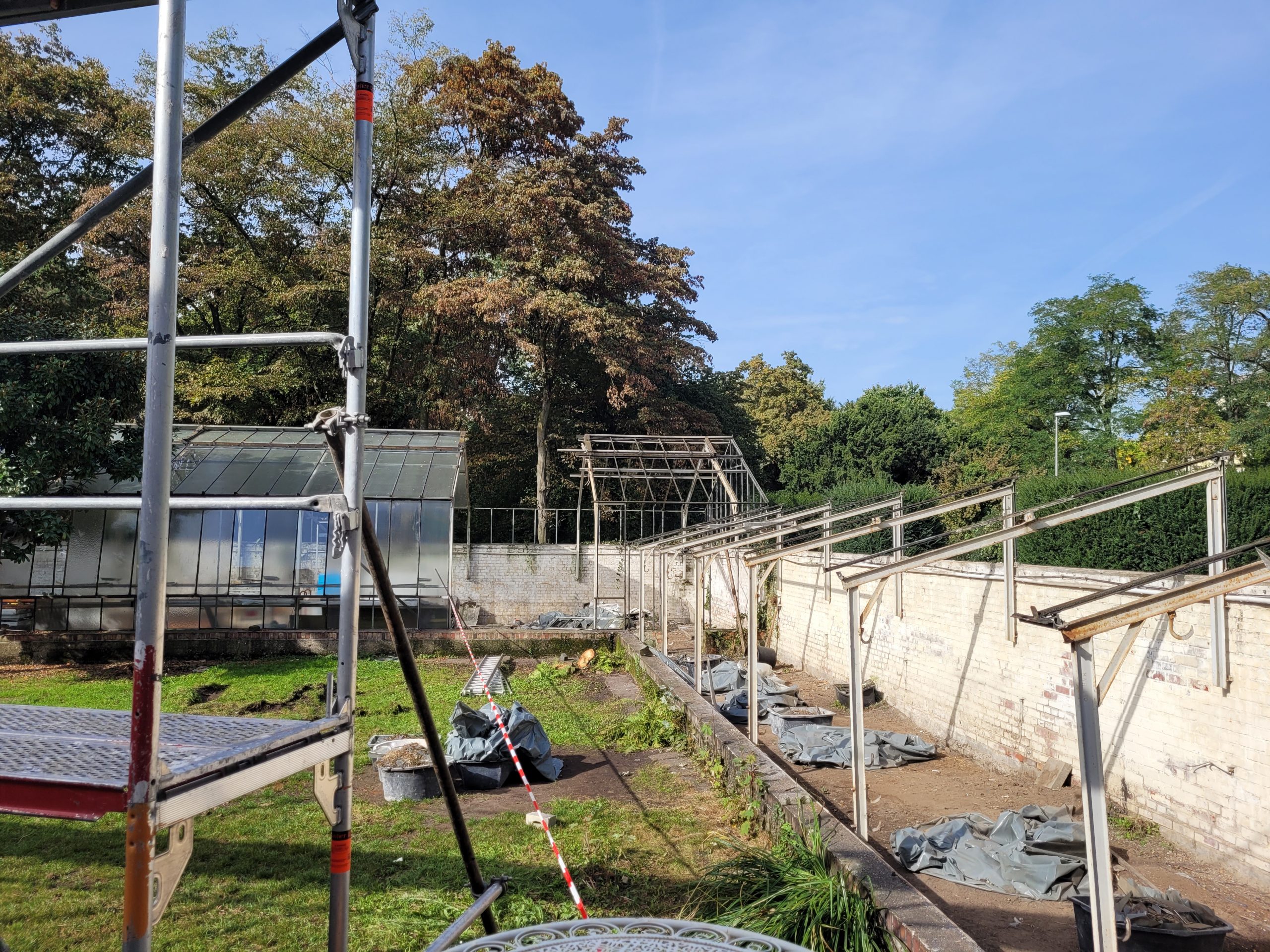 Ein bedeutender Meilenstein wurde bereits erreicht: Der Neubau, bestehend aus neuen Büros innerhalb des bestehenden Glashauses sowie einem modernen Foyer, ist fertiggestellt und verfügt über eine vorläufige Betriebserlaubnis. Die Sanierung des Hauptgebäudes befindet sich derzeit in der zweiten Bauphase. Erst vor wenigen Tagen wurde das neue Dach aufgesetzt. Momentan wird die Dachdeckung mit integrierter Fotovoltaikanlage installiert – eine nachhaltige Maßnahme, die ursprünglich nicht geplant war, nun aber das Ziel eines “grünen Theaters” unterstützt.