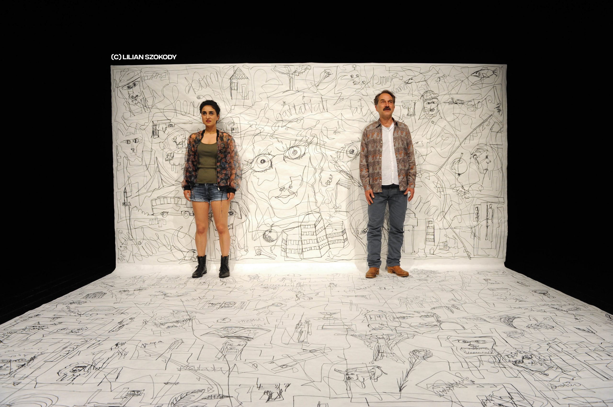 Ein roter Teppich, eine fast leere Bühne, eine fahrbare Wand, die „mit Zeichnungen von Gesichtern, Häusern, Pistolen oder Autos aus den kollektiven Gedächtniskammern bestückt ist“ (choices), und zwei Schauspieler, die uns Kraft der Sprache hineinziehen in das Leben der Protagonisten – ANZIEHUNGSKRÄFTE setzt auf die Imaginationskraft und den Sog einer pur wie raffinert erzählten, sehr berührenden Geschichte: 4.000 km voneinander entfernt machen sich Şêrîn und Ferhad ohne einander zu kennen am selben Tag auf eine weite Reise: Sie, um dahin zurückzukehren, wo sie geboren ist, er, um dort Krieg und Zerstörung hinter sich zu lassen. In Istanbul kreuzen sich ihre Wege. Sie verlieben sich. Aber sie lassen sich von ihren Zielen nicht abbringen.