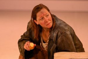 “Es ist dun­kel. Nur ein Schim­mer glim­mert in der Fer­ne. Die Wälder bren­nen. Das Pras­seln der Feu­er erklingt über die Laut­spre­cher. Es scheint, als könne man den Rauch förmlich rie­chen. Es ist eine beklem­men­de Kulis­se, ein einschnürendes Sze­na­rio, das die Nach- rich­ten der Flam­men­mee­re sofort wie­der auf­er­ste­hen lässt. Vor die­sem Hin­ter­grund tref­fen wir die Sehe­rin Pythia. […] Aus die­sem Nichts zau­bert die Haupt­dar­stel­le­rin alles. Das Publi­kum ist von ihr gefor­dert, hängt an ihren Lip­pen, denkt und fühlt mit. Ein Stück, das genau in unse­re Zeit passt.”