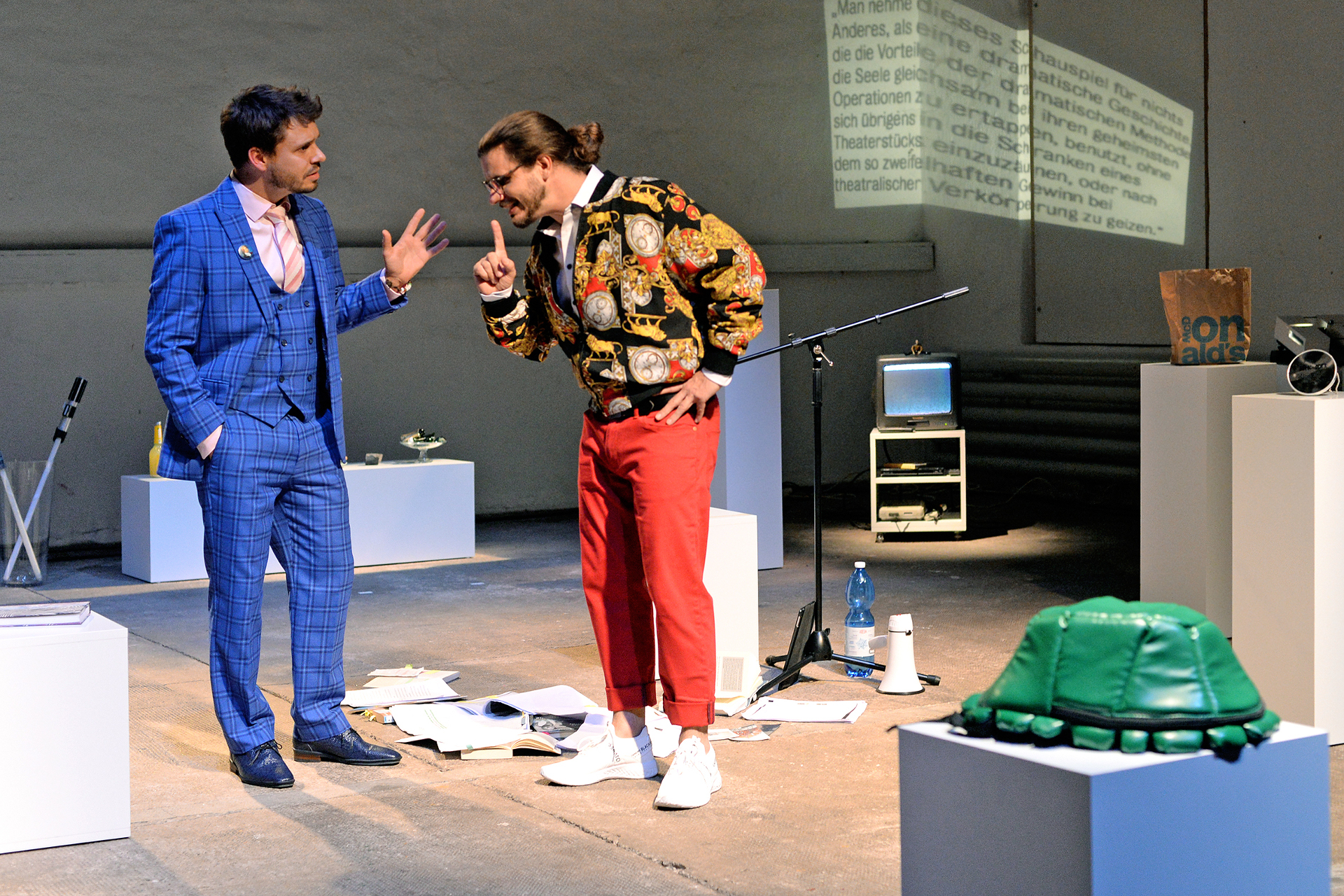 Im Rahmen von Raub – nach F. Schiller verknüpfen die beiden Schauspieler persönliche Erfahrungen, Sichtweisen und Haltungen mit denen der beiden Brüder aus Schillers Die Räuber. Anders als bei Schiller begegnen sich die beiden Brüder in Raub – nach F. Schiller.